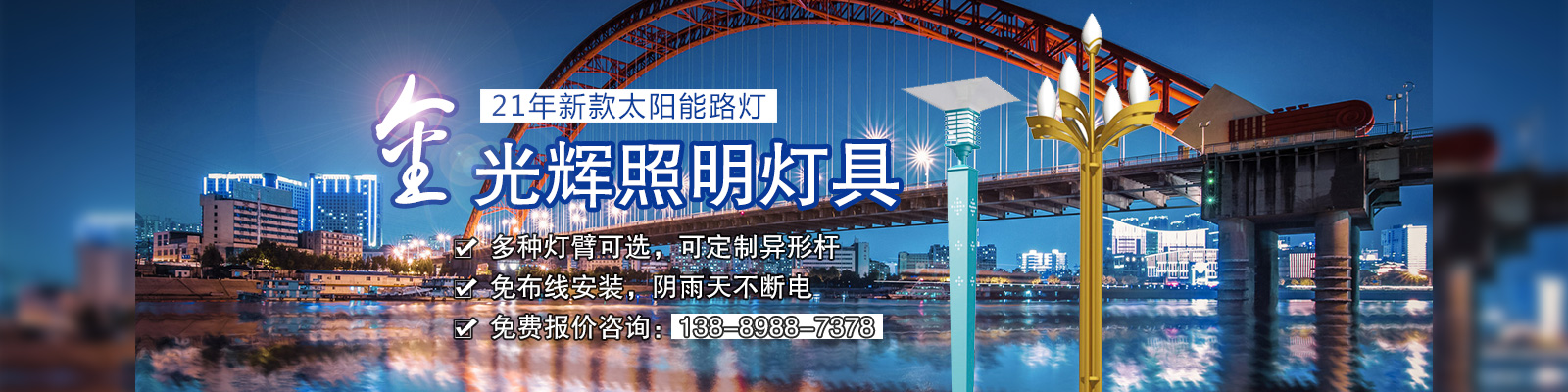 沈陽金光輝道路照明工程有限公司是一家從事太陽能路燈、庭院燈、高桿燈、景觀燈、草坪燈、工礦燈、LED照明、監(jiān)控桿、信號燈桿、音樂噴泉等室內(nèi)外照明燈具綜合性生產(chǎn)廠家及專業(yè)的研發(fā)、生產(chǎn)、銷售、服務為一體的技術企業(yè)。